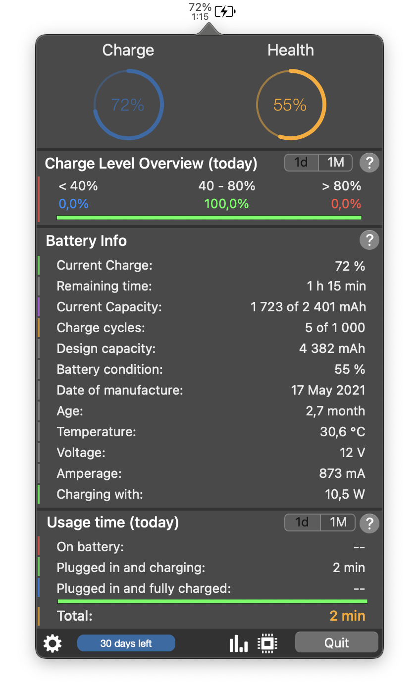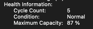 we I get minus numbers in coconut battery. try better battery from app store. it shows me 88% and macOS shows me 93% I'm at 50 cycles now. I used at 100% plugged consistantly may be for a month or tww. was a hectic time. plus I though macOS battery management will take care it. but as I can see it certainly didn't anyways. it dropped from 100% to 93 like within a month. but ever since its same. so I'm bit relieved. I notice battery temp rising when I connect my samsung T7 SSD. I kept it plugged all the time since the day I bought this btw. what I wanna say is try to narrow it down and identify whats causing the issue.Mine has 91% after only 5 cycles. Always unplugged.