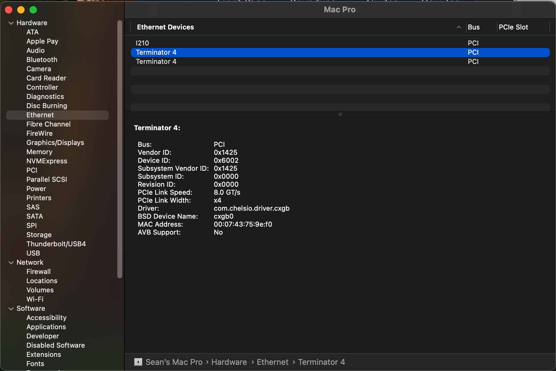 AppleVTD does show on IOReg. I haven't tried to see what mode its working on under Linux. I did boot into windows to check if the card was recognized and it was recognized as an ethernet controller. I'll look into how to verify if its in Ethernet mode.