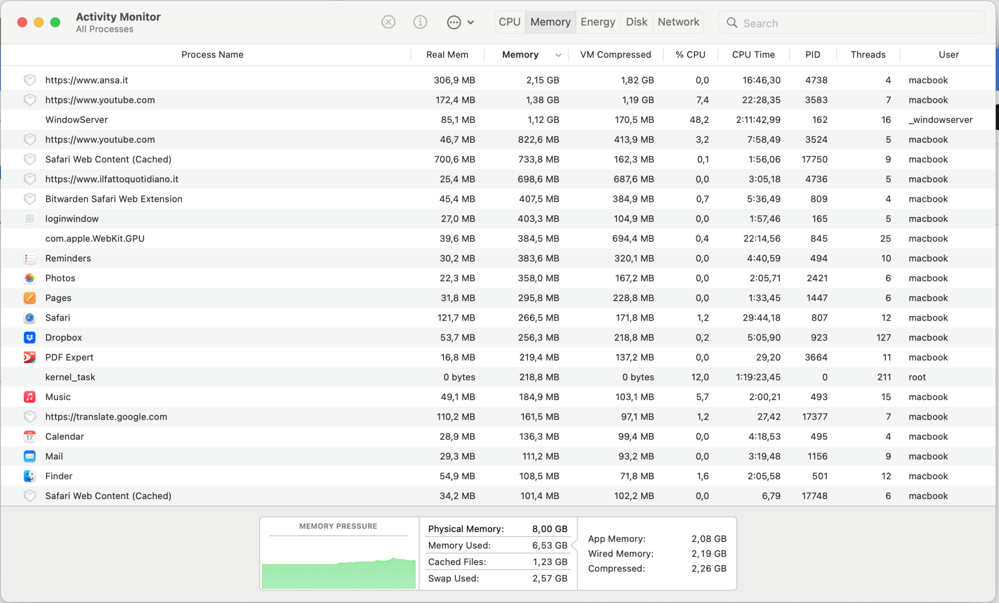 Sitting at yellow memory pressure with the same workload yesterday that was in the green. Will probably have to sign out & back in…