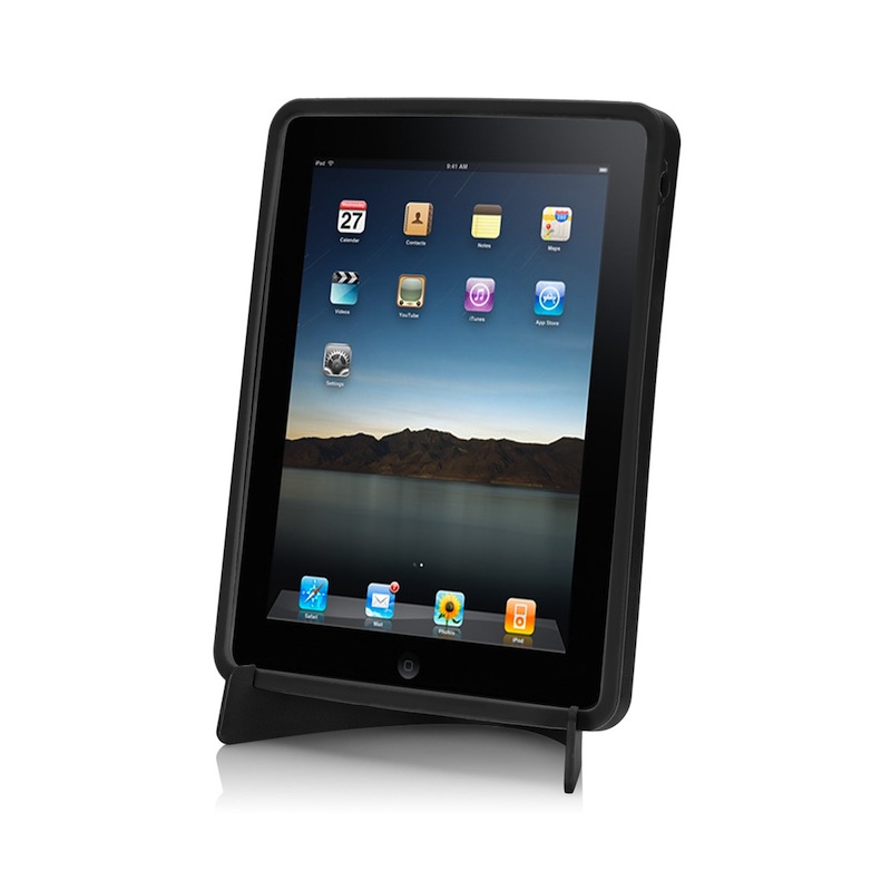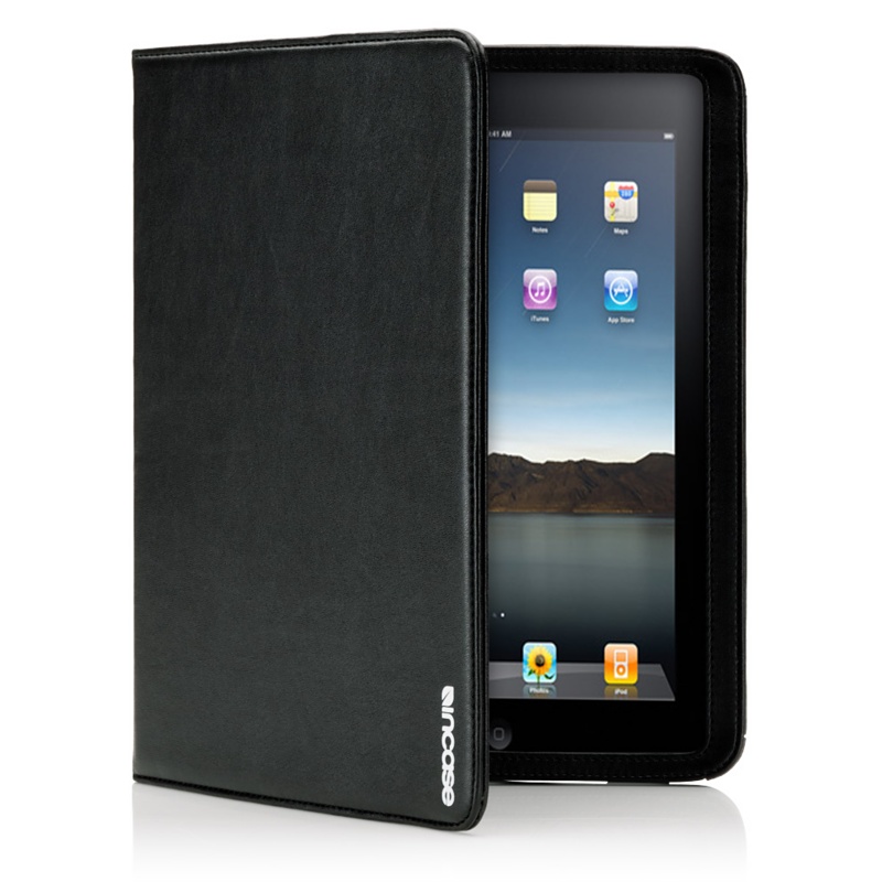 Looks like Incase has six case designs: slip case (insert, $40), sleeve plus (zipper, $40), convertible book jacket (moleskine-esque, $60), a travel kit (with keyboard pocket, $60), and two protective covers (with a stand or with a grip, $40).