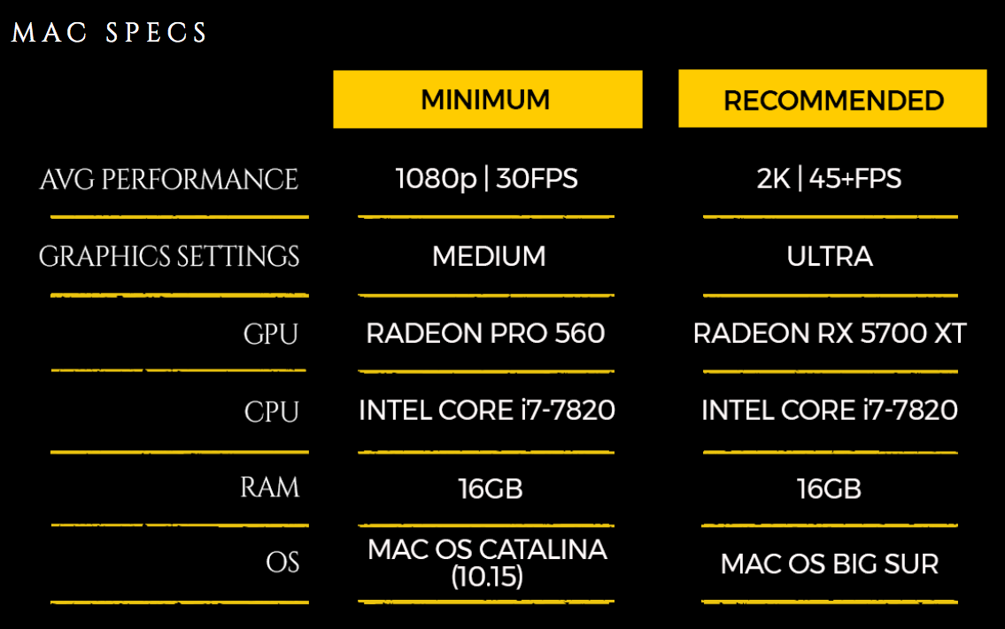 The Radeon Pro 5700XT required to play the games at 1440p 45 fps ultra on Mac is at least 30% slower than the GTX 1080ti required to play at 1440p 60fps ultra on other OSes.