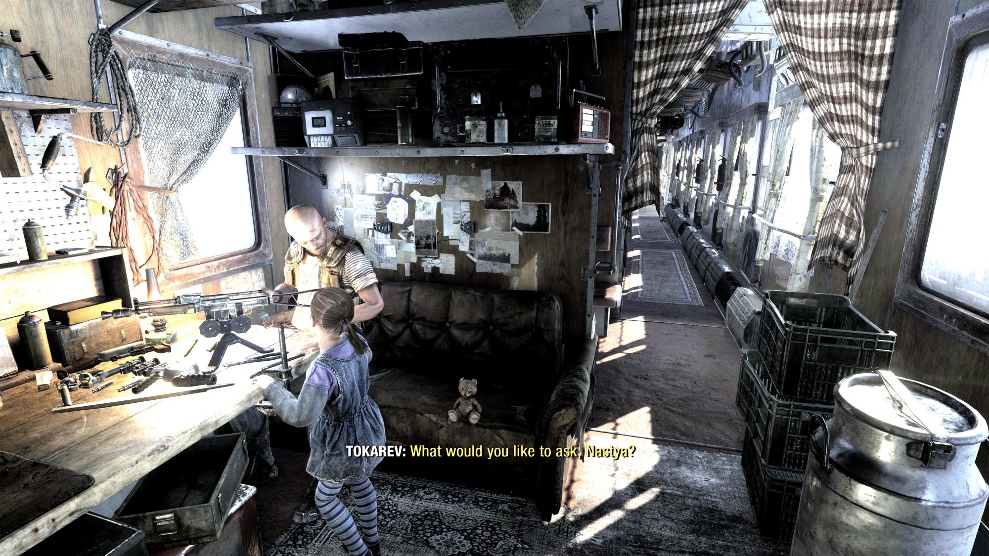 - Give the Guitar and Teddy bears to their quest recipients? Yeah real high priority stuff there, but they are the only side quests I've seen so far... https://gamefaqs.gamespot.com/xboxo...ers/508191-how-do-i-give-the-guitar-to-stepan When I had them and came back to the train and talked to the people associated with the quest, they asked about the items.