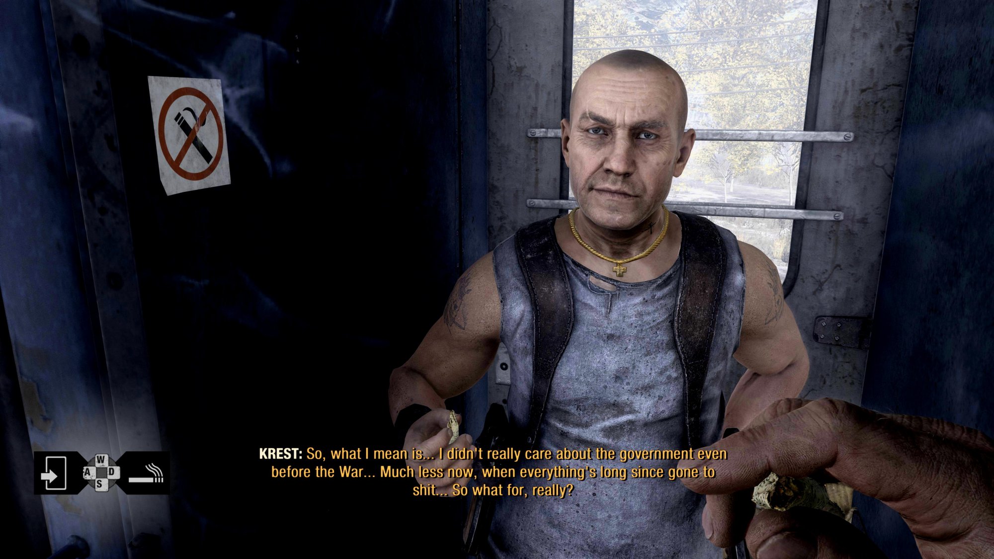 Not long after you enter the icy Volga, you'll meet an engineer named Krest. He's holed up in a crane overlooking a mutant-infested warehouse, but despite his circumstances, he's managed to squirrel away quite a lot of materials and machinery. His humble abode is also equipped with a proper crafting bench, and that bench should be your first stop after meeting him, because it will allow you to craft and install the compass attachment for your brace. The thin red needle on this compass always points to your current primary objective and it's easy to see on your arm with the rest of your HUD, so it's incredibly handy to have when you're out exploring.