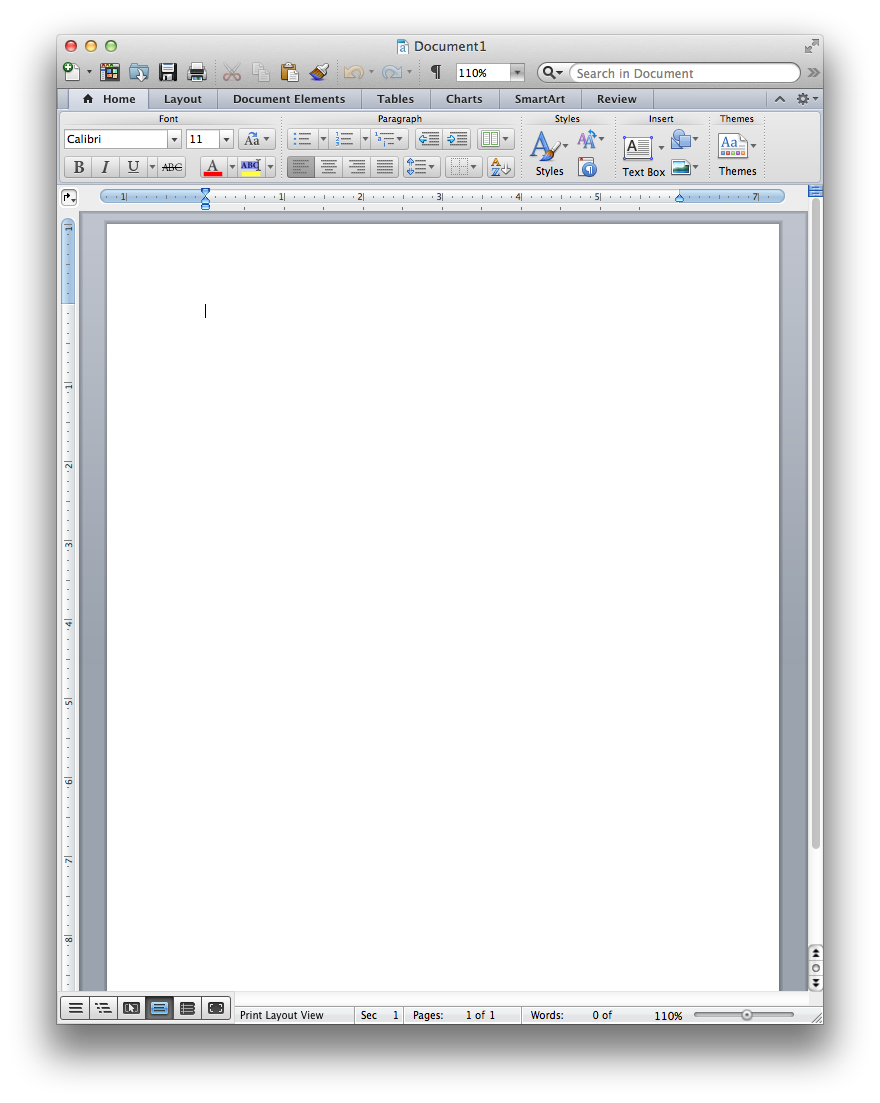 I'm still not happy because I like to see how my document actually looks, but Word's Page Layout view isn't as nice as Pages'.