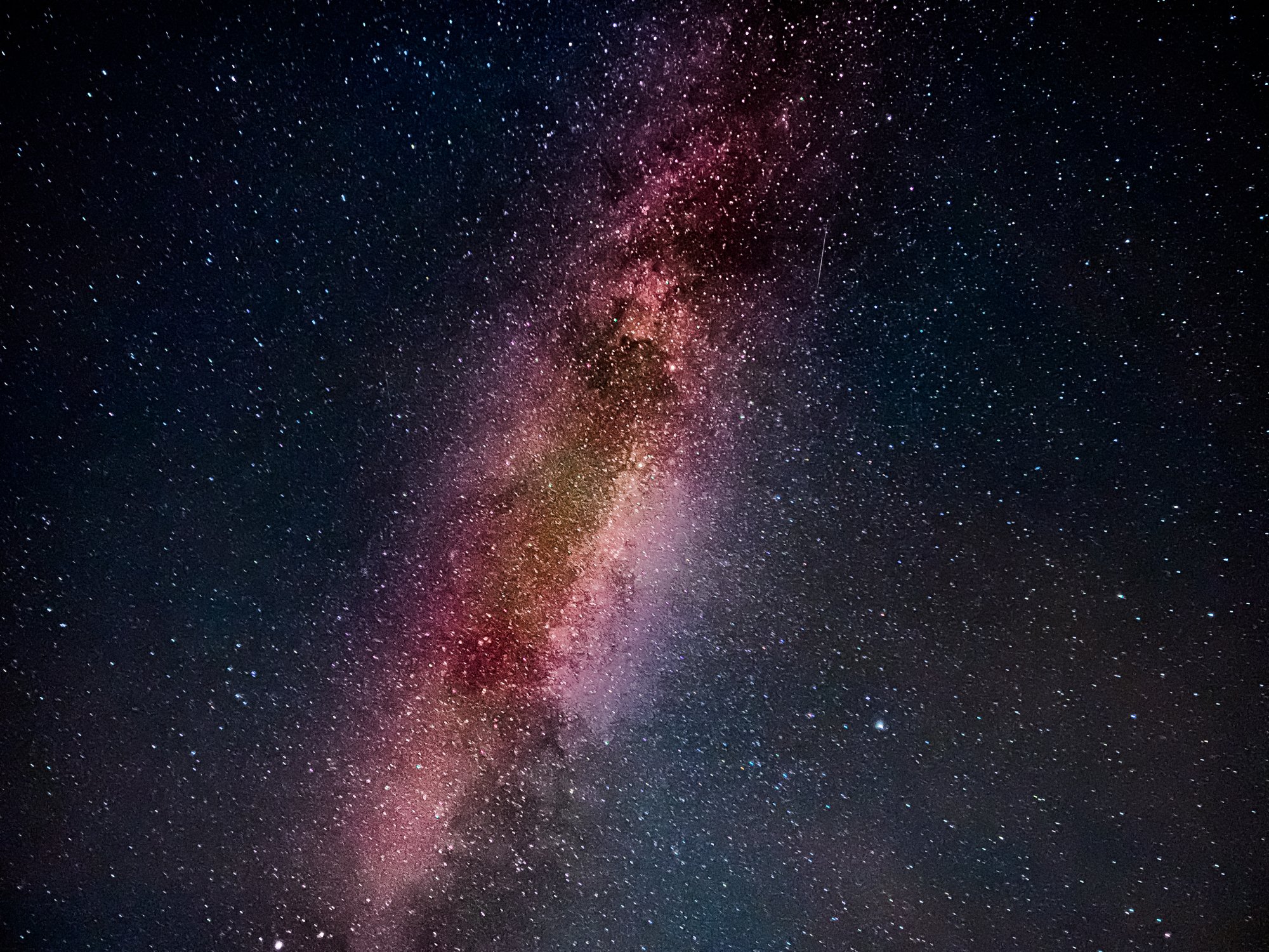 So I drove to a dark site last night and set up my iPhone and Skywatcher Star adventurer to see if tracking the night sky for 30” during a night mode capture would look better. It does…The stars are pinpoint as compared to a tripod only mounted iPhone. You don’t need to track the sky, I did to see the difference. The images are better since the iPhone takes three 10” exposures and combines them therefore the stars are slightly elongated without tracking.