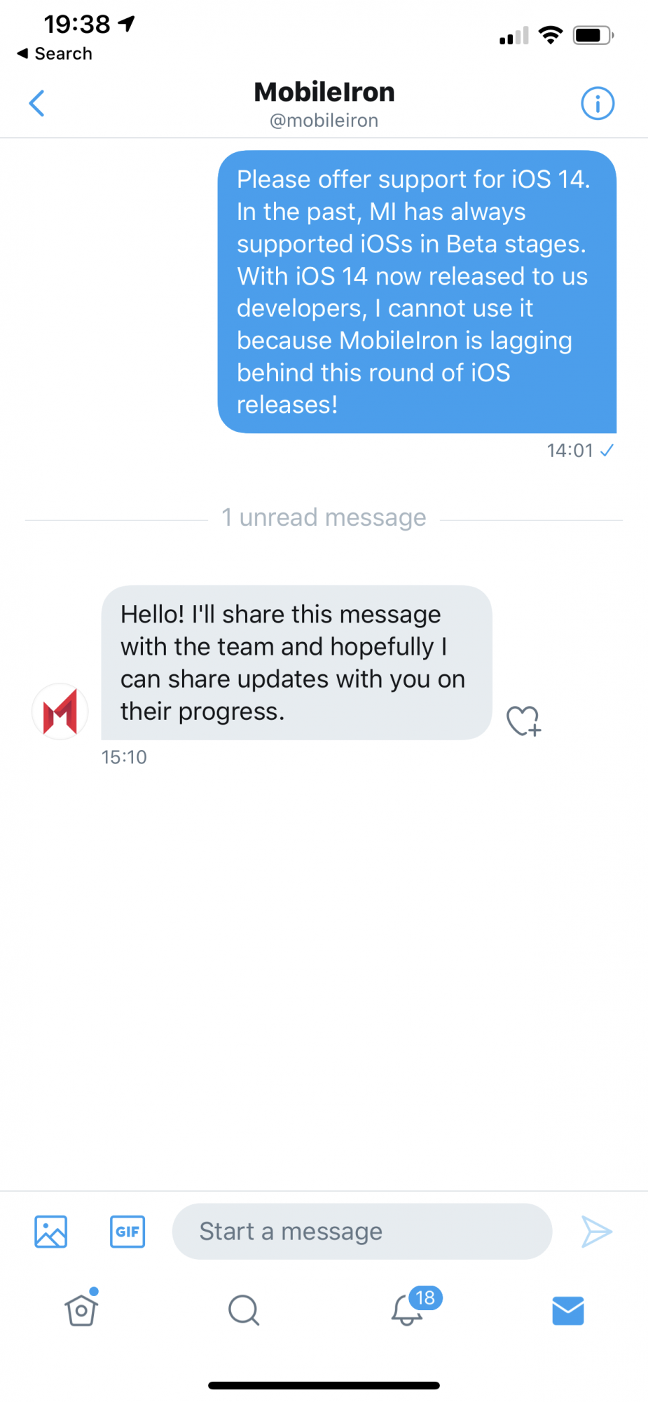 Last week I upgraded to the iOS14 beta 1 and my device got reported as jailbroken, and my access to corp email got revoked. I have to restore the device to iOS13.5.1 to get the access back. No the beta 2 is released. Anyone knows if the Mobileiron is usable on the beta 2 version? Million thanks!