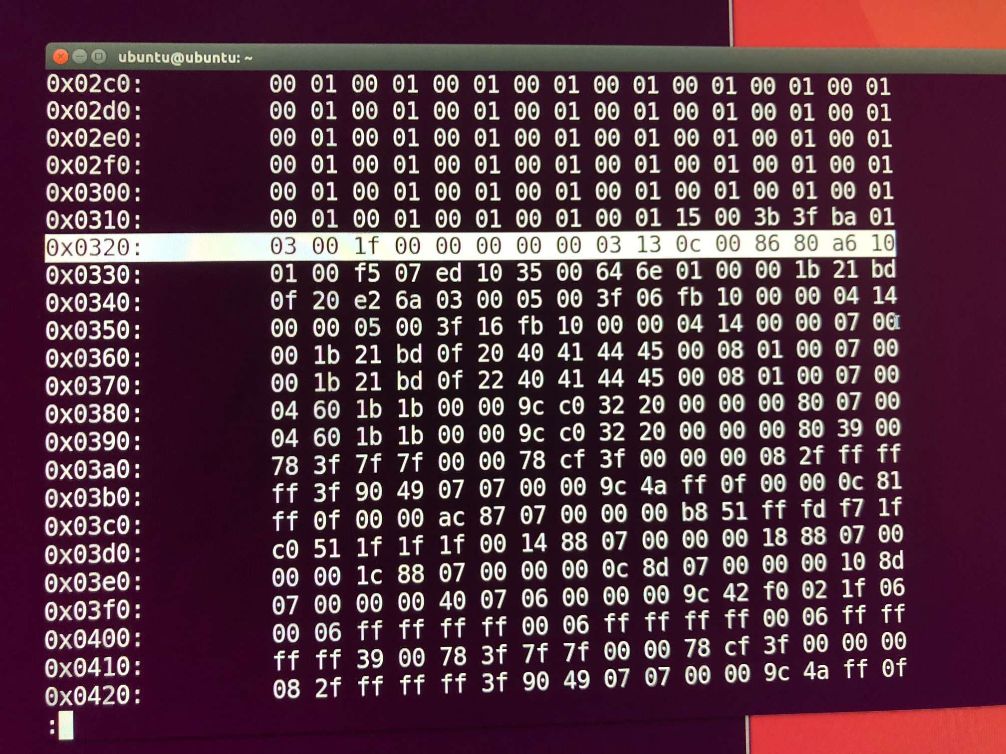 So, if we start at offset 0x0320 you would count 0,1,2,3,4,5,6,7,8,9,a,b,c,d,e,f for each pair of digits.