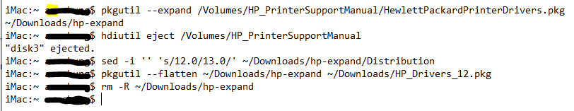 pkgutil --flatten ~/Downloads/hp-expand ~/Downloads/HP_Drivers_12.pkg