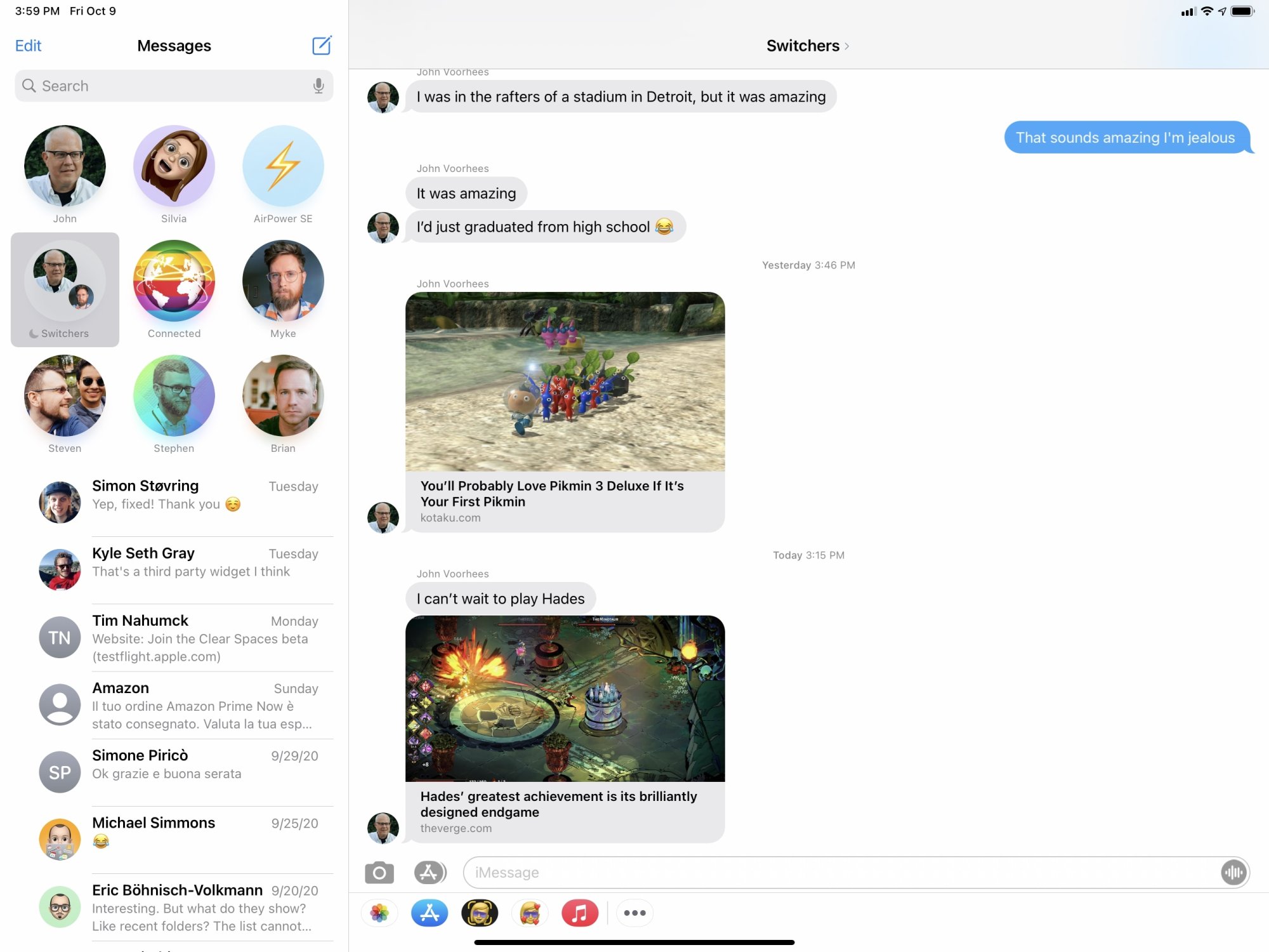 Could someone please tell me how to move the dividing bar in Messages, to make the column with names bigger and the message part smaller, on a 12.9 M1 iPad?