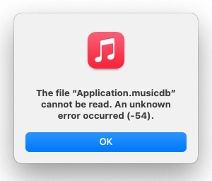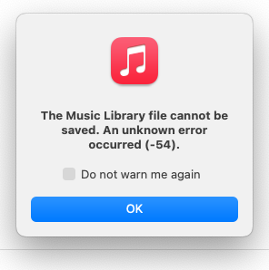 * ISSUE SOLVED* After reading https://appleinsider.com/inside/apple-music/tips/how-to-fix-the-apple-music-error--54-on-macos i renewed the chosen music library folder and rebuilt the library