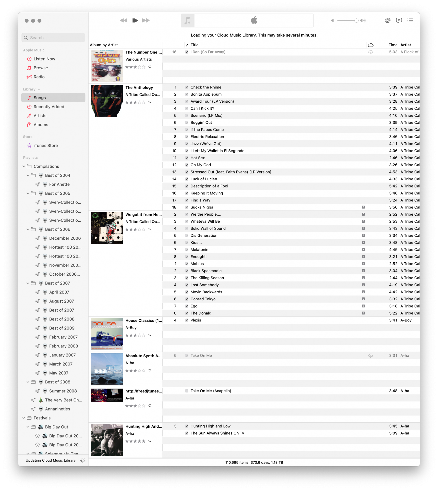 Anyway, on my original log in to Apple Music I had the occasional issue with albums being split up, etc. but not with the artwork in general for the most part. I set up the log in with the Apple Senior Tech and he walked me through with copying and pasting my Apple Library file from one ID's files on the main drive to the new one and pointing Apple Music app to the external drive where I keep the Music files themselves. The library under the new ID synced properly, all albums and playlists there - both what I had ripped myself and those I added from Apple Music - BUT NO ARTWORK AT ALL. He said this is an ongoing issue with Music. Aside from actually deleting the albums and re-adding them from Apple Music (which does bring back the artwork) any other suggestions?