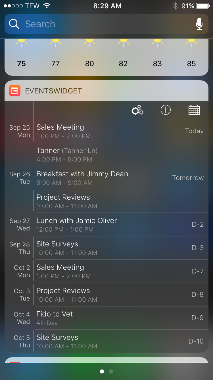 The app contains two different widgets: one that displays only upcoming events for the current and next day, and another one which is a month calendar.