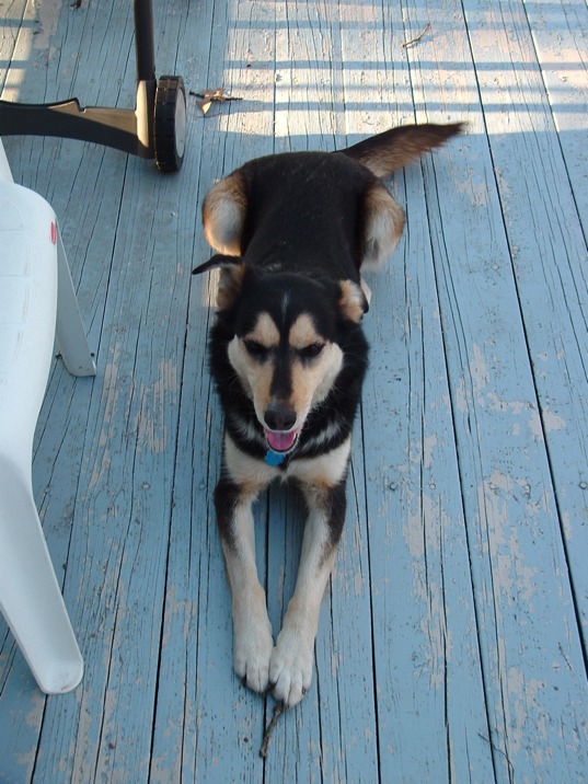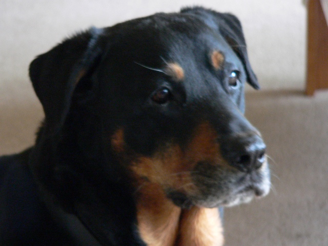 Shes on her last legs now I think. We got her back in 1997/ish from a rescue centre (Manchester Dogs Home). She was supposed to be 5 or 6, according to the vet. My dad didn't want her at first. Legend has it she was in a pen full of other dogs and she came up to greet my parents in the huge scramble. My dad said no to her and she apparently sulked away to the corner and sat down looking back. My mum started crying so they picked her
