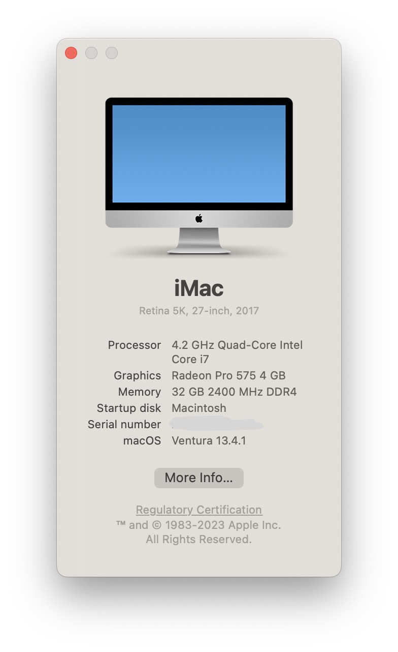 I have recently updated to the last Mac OS my 2017 27” iMac will ever get. I was waiting on Ventura because of some audio software, but they all seem to support it now, so I made the change…