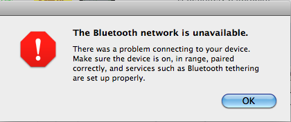 I was able to complete the initial pair with my iPhone 4 and my MacBook Air, but whenever I then try to initiate the connection from my MacBook Air to my iPhone 4 after that, my laptop says says "The Bluetooth network is unavailable".