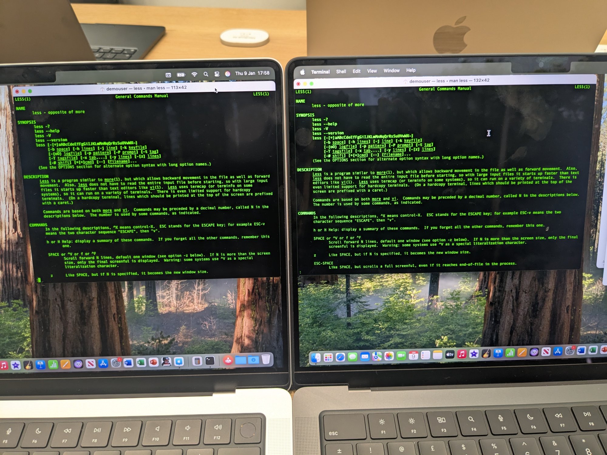 I found what I thought might be kryptonite for nano displays: bold fonts in a Terminal window with Homebrew profile (green-on-black like an old-school terminal). So I went to the Apple store and put a nano and non-nano 14" MBP side-by-side and took these photos, click for full resolution pics: