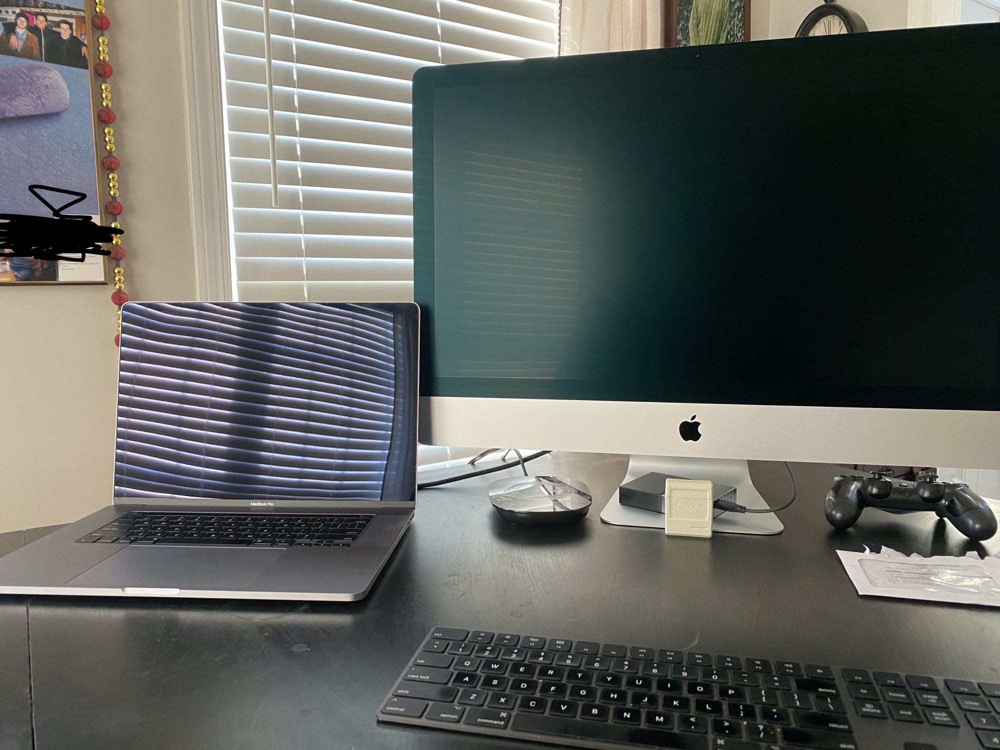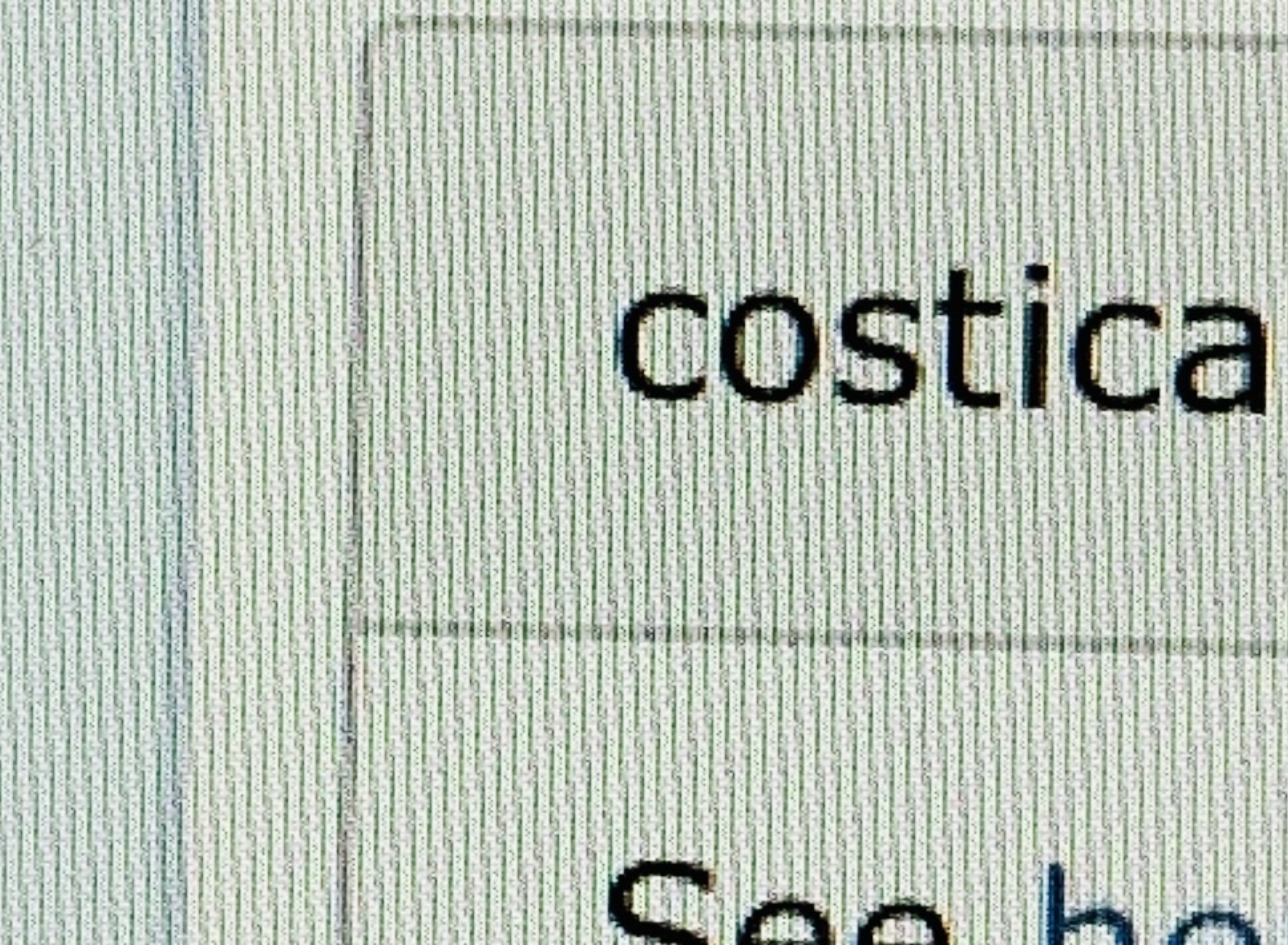 Here's blowups of the same thing on both displays (taken with iPhone, tried to match colors and size as much as possible, some artifacts can be from the iPhone or the camera/display interference).