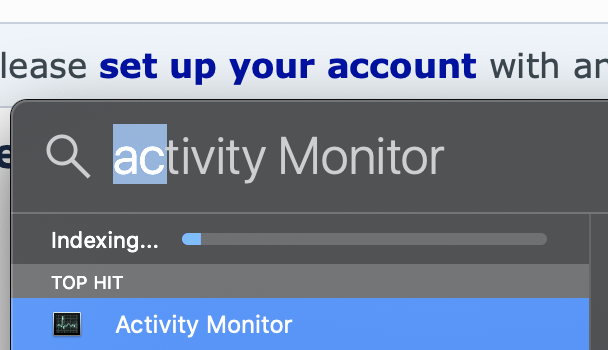 Indexing is stuck at the exact same point when I check the progress bar via Spotlight.