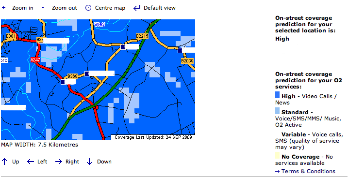 Also i've just done the Coverage checker on all networks that i preferred and these were the results. The 1st one is Orange, 2nd is O2 (btw the white squared lined spaces with the blue squares next to them is where the writing of the places where i live is, i just erased them out for privacy use) and the 3rd is Three.