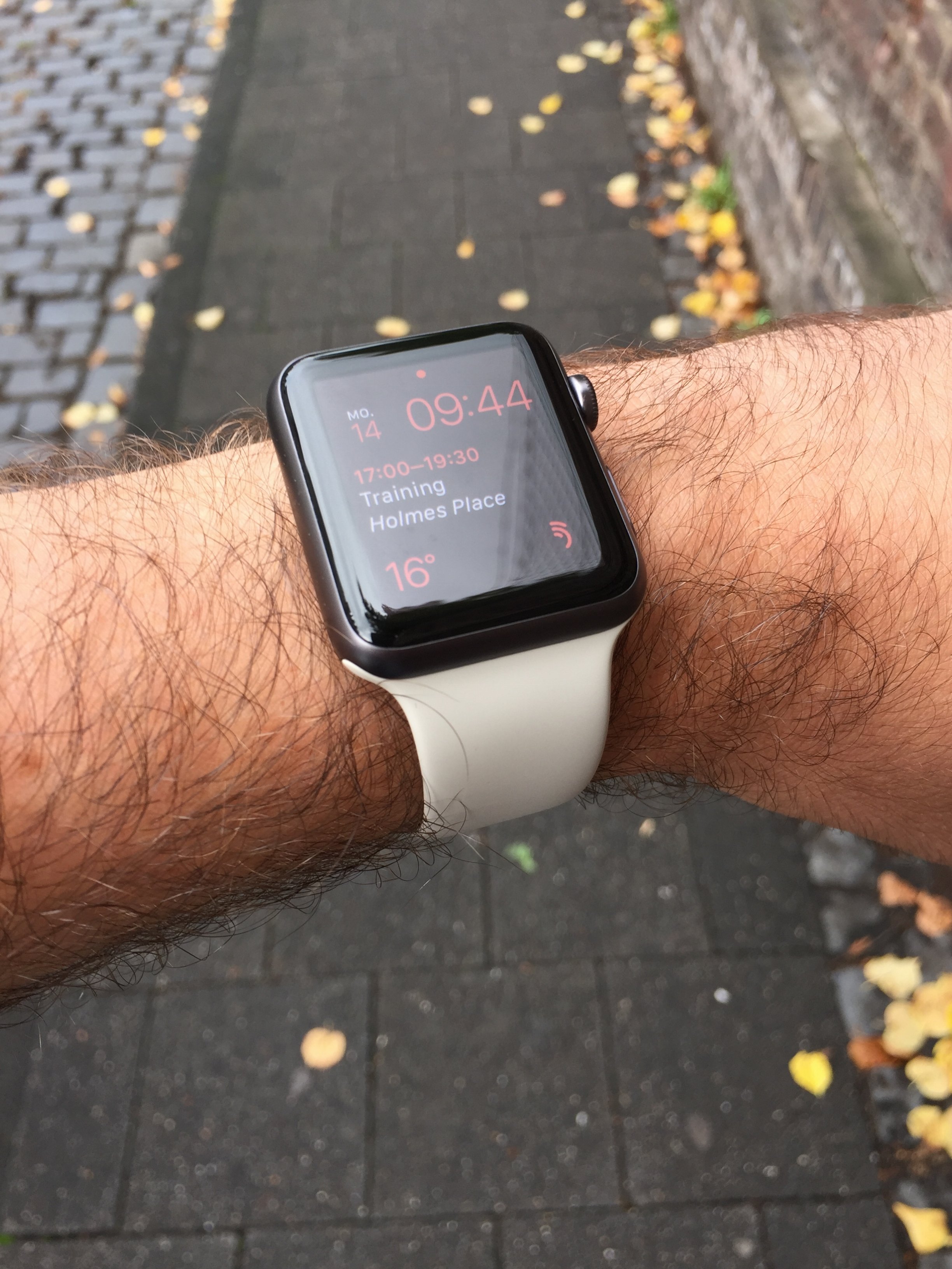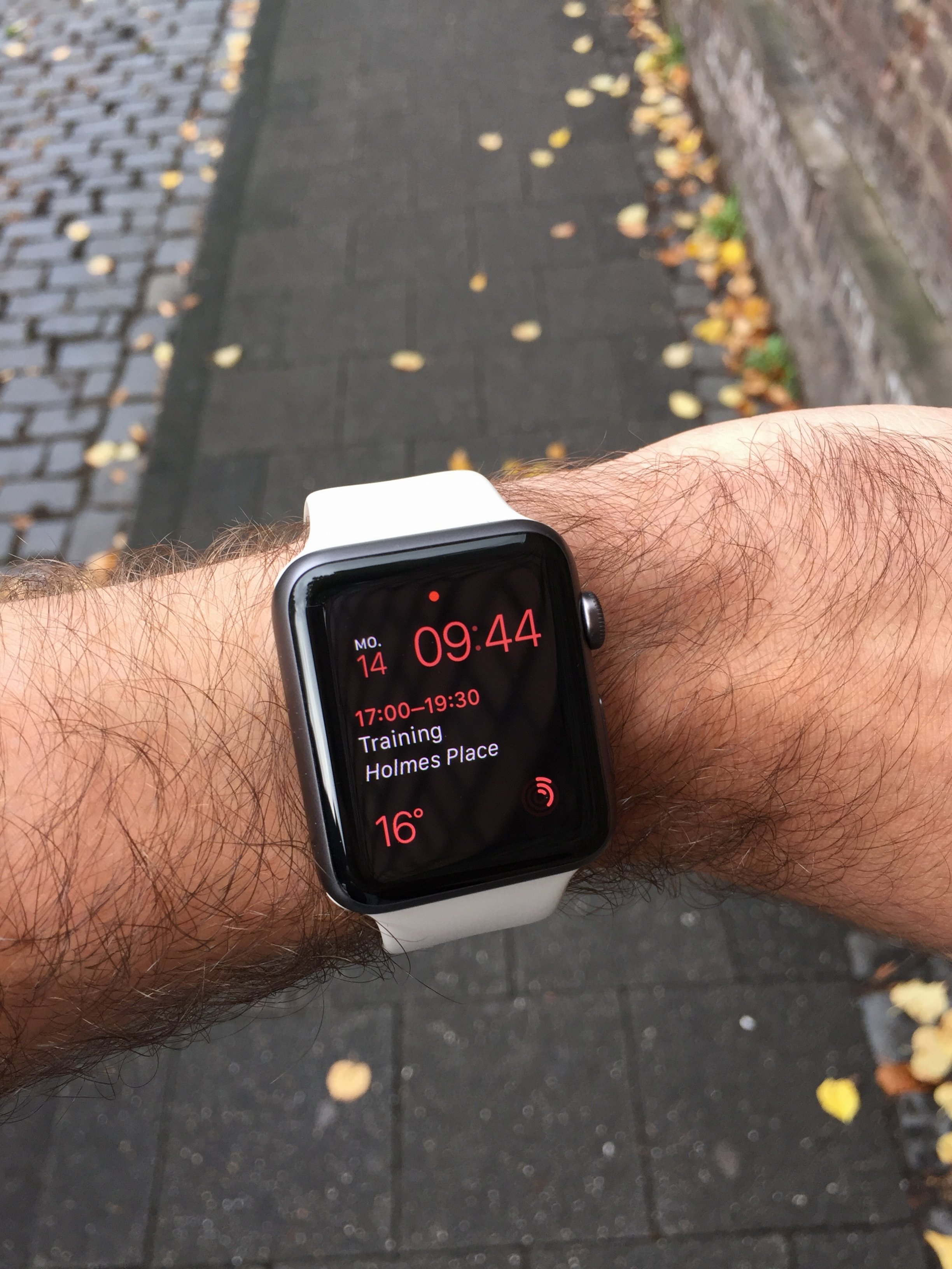 1st picture is with my OEM Apple iPad Mini red cover - ver similar in color. 2nd picture is with my Red Wings jersey which is a primary red color. 3rd picture is indoors under fluorescent lighting at Costco. 4th picture is the watch on top of a Coca-Cola can pack wrapper.
