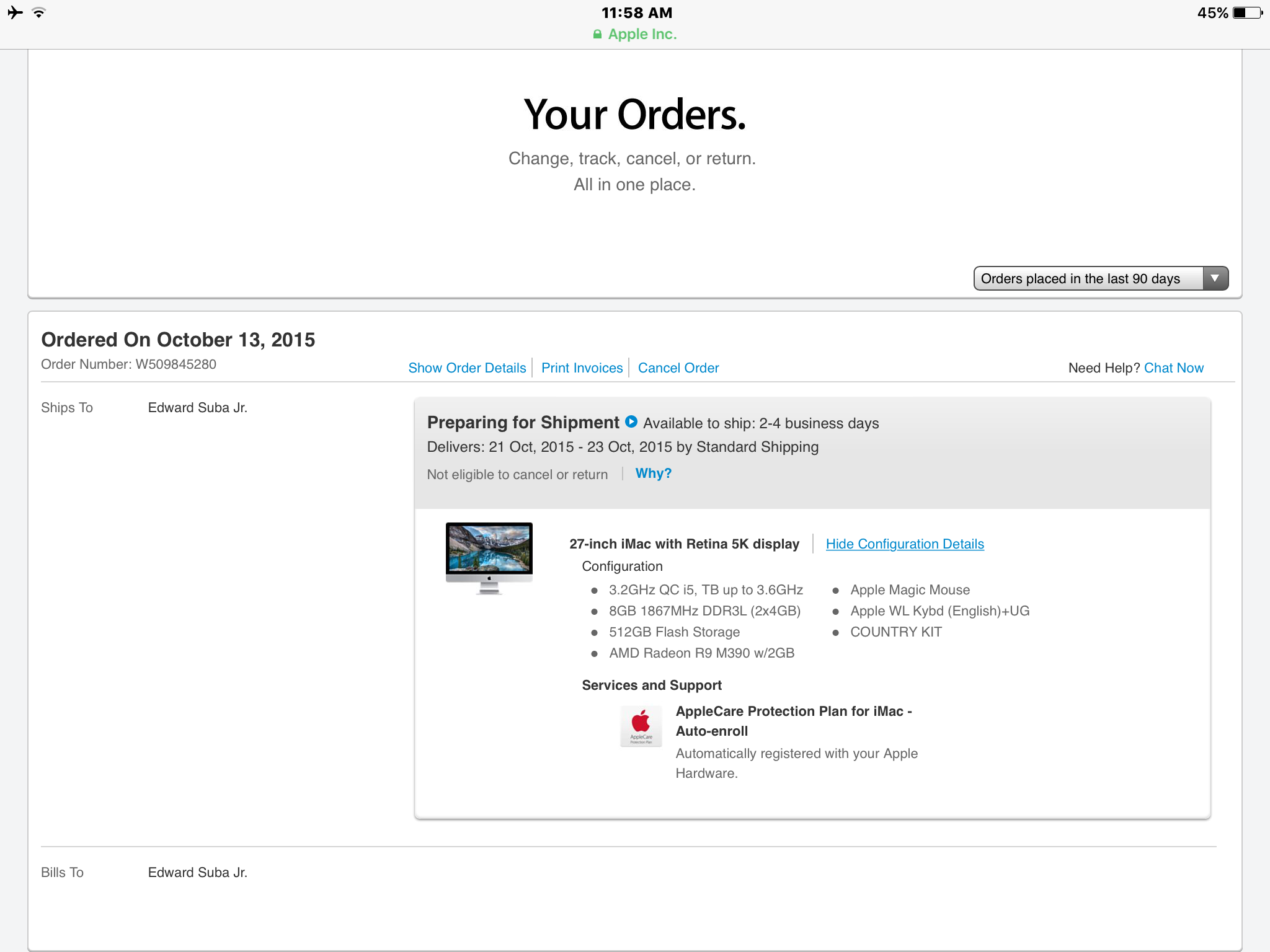 View attachment 593771 Yea, ordered first day they were announced. Still sitting here. Getting a bit antsy. Was I supposed to get some sort of Apple Care notice? Nothing so far.