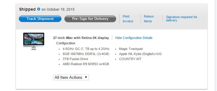 I ordered the maxed out 27 inch iMac with the i7 and m395x on the 13th, but it is still in Processing mode, not even Preparing. I tried Chat, but they were no help. Just said to check order status.