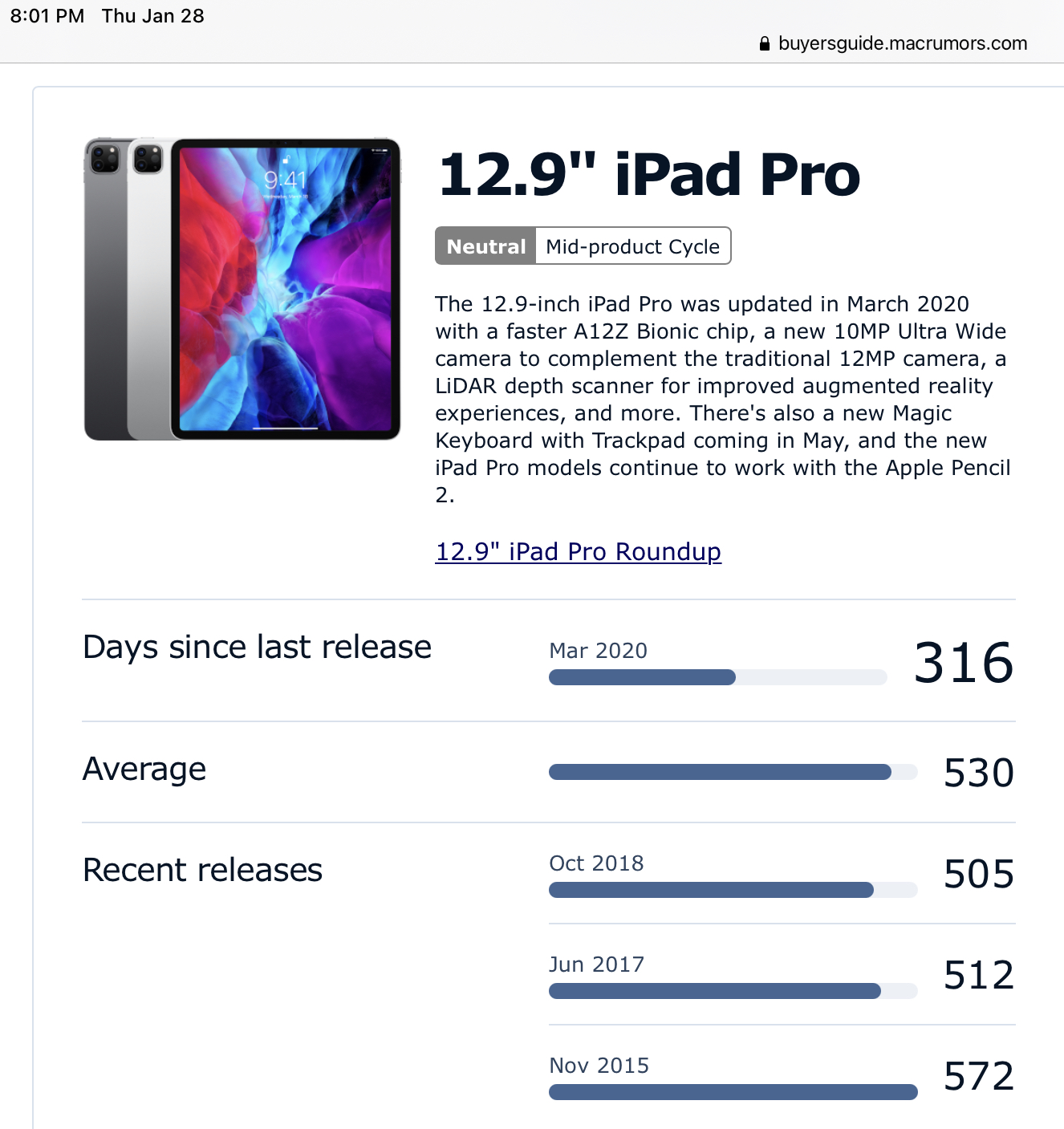 I have heard the update may only be the 11” model in March with the 12.9” not happening until Fall, in which case, I’d rather not wait that long.