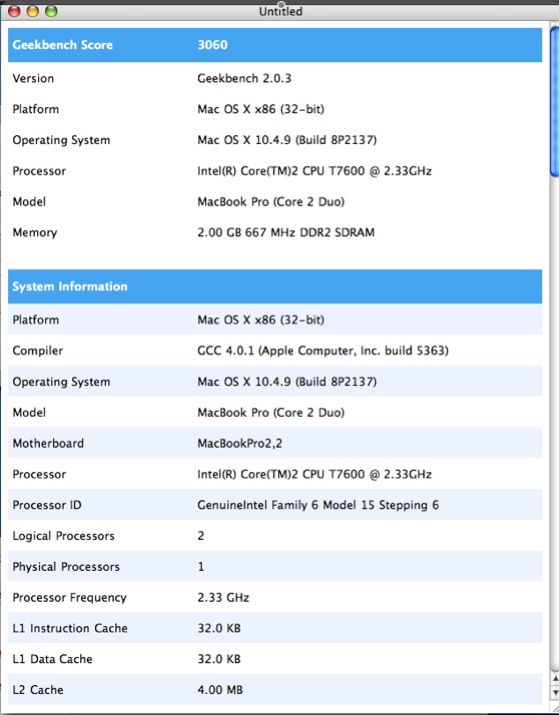 I thought my iMac 1,83 Ghz Core 2 Duo 512 MB Ram would have a score like 1200 but look at this