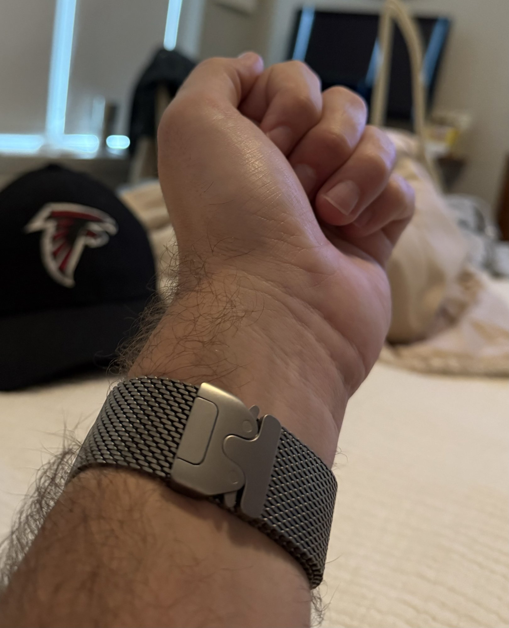 What’s your wrist size?Just got my Black with the watch in Small. Size is great for my wrist but it’s my hand/fist that’s large and makes it hard to put the watch on. Lol