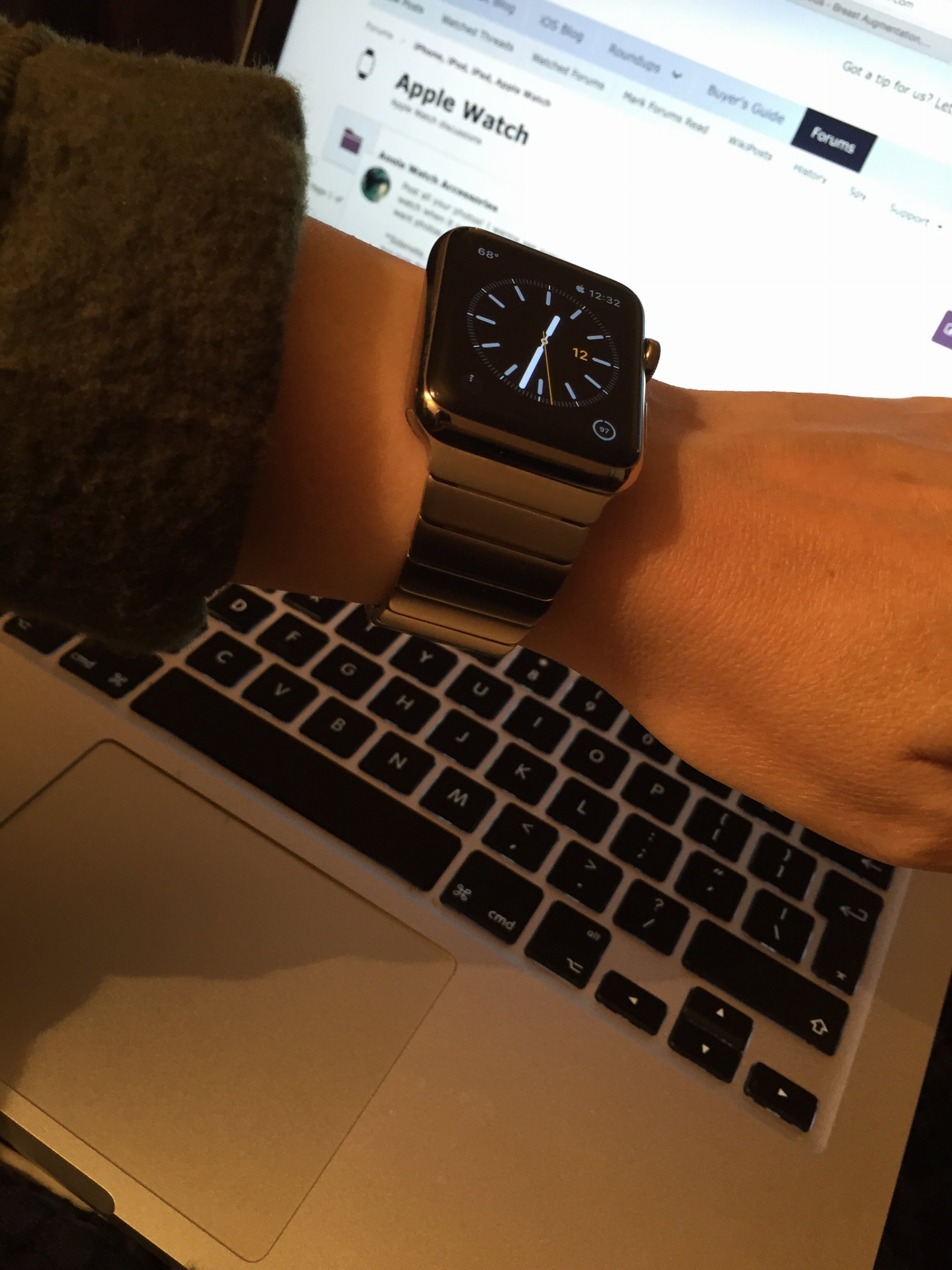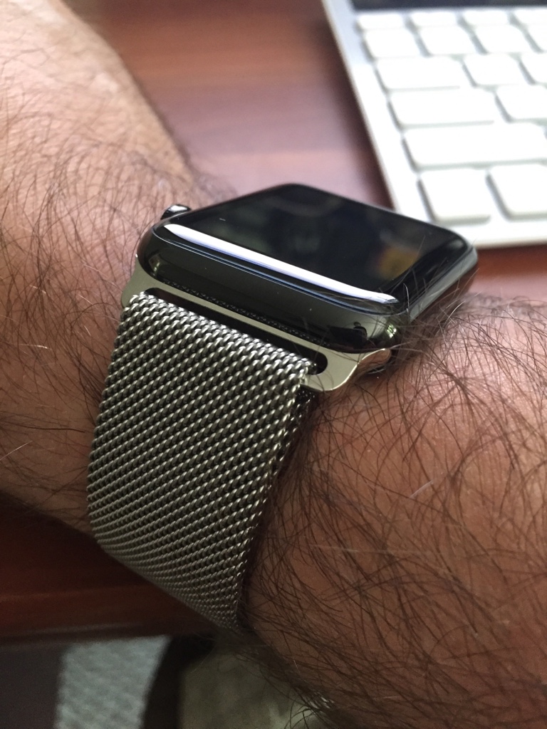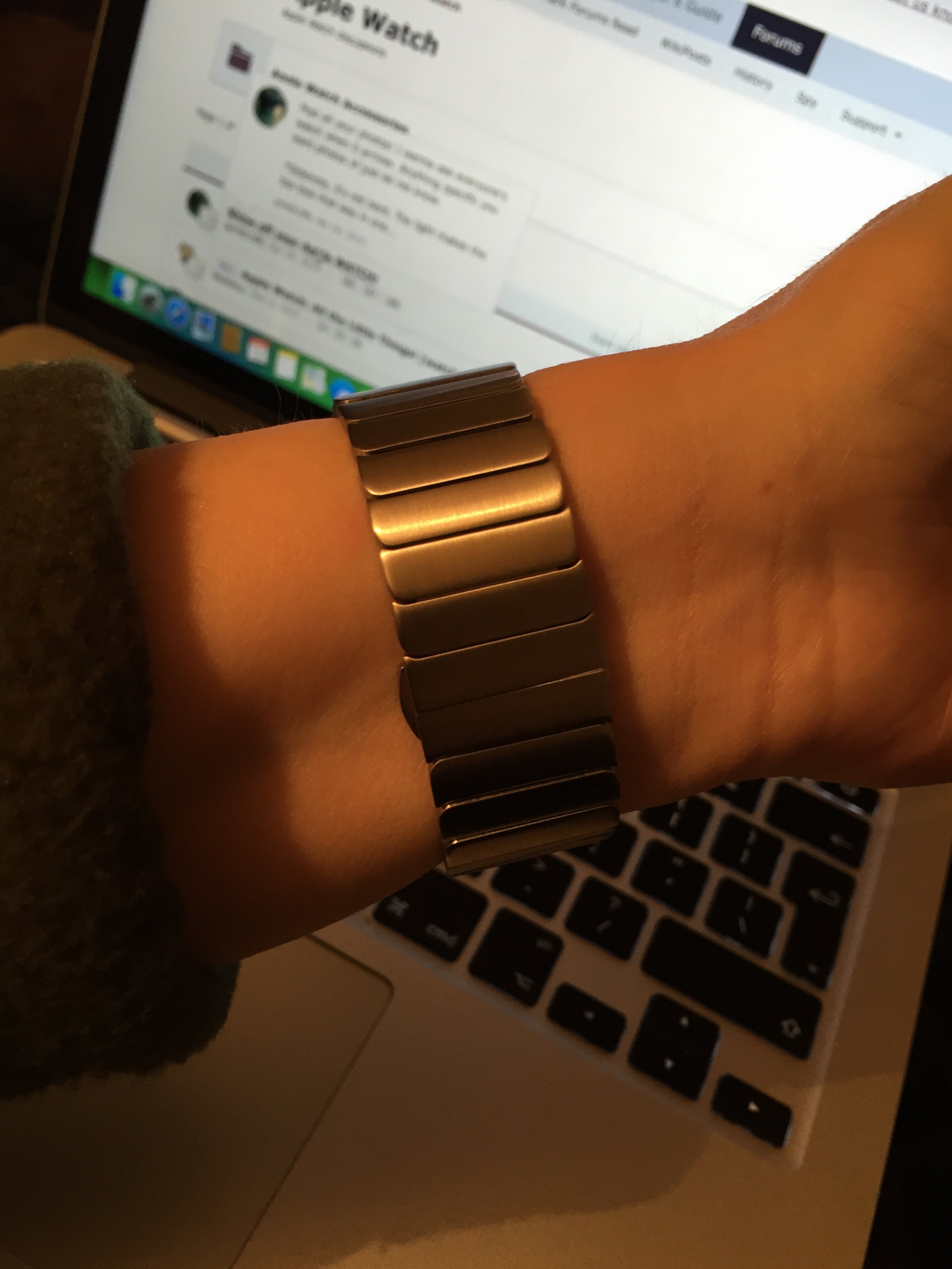 I love that there's no gaps in the links. I haven't seen the Apple link band but this one is really good and its comfortable.Any chance you can post more pics??