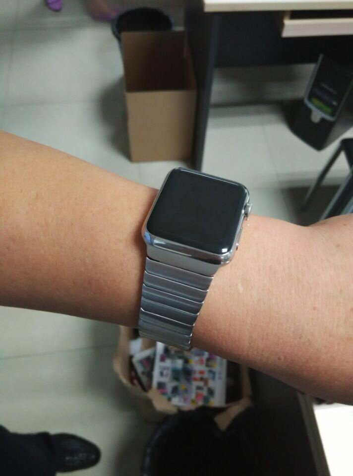 Unfortunately I'm going to return it. The problem is that it's too long. Utica's shortest is 9 links between the clasp and end link. Apple's is 7 links. For my 6.5" wrists, in the summer, I'm wearing 8 and 9 links on each side of he clasp. Utica's only provides 9 & 9 link on each side, so it's 1-2 links too long for me (and will get worse in the winter when my wrist shrinks by about 1 link). Also, Utica's links are longer--compare the left side of the bracelets below (both have 9 links). So realistically, I'd probably need 8/8 or 8/7 links with Utica's bracelet.