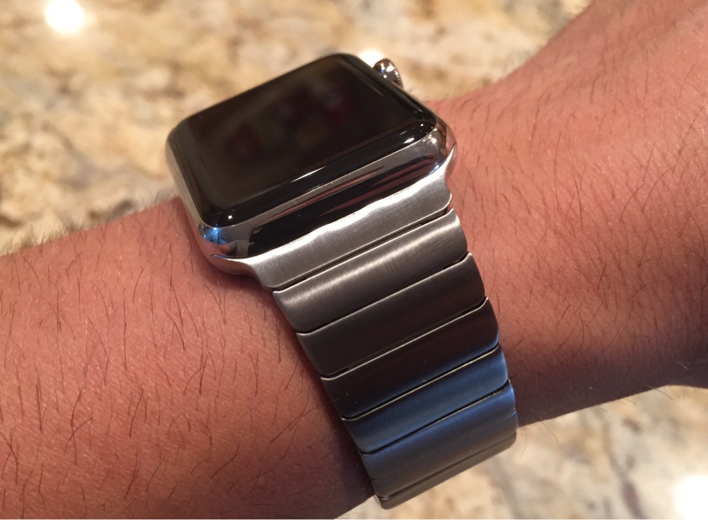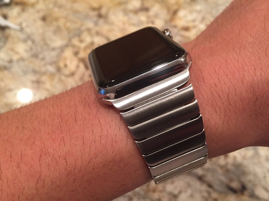 Just arrived link bracelet for Apple Watch comes in 42mm only at the moment, gap between links are now minimal.