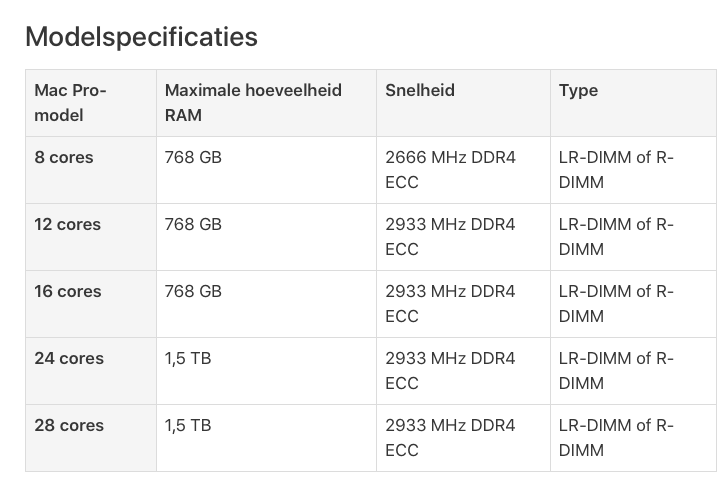 I have a Mac Pro 7.1 ( standard and updated -- ) with 192gb 12slots ram 2666mhz ddr4 ( bough this seperatly 2 years ago )