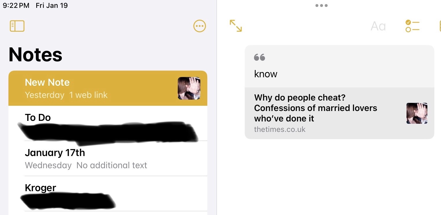 Have you perhaps created or accepted a shared note with someone(s) else and that person(s) is sticking news articles & similar in the note?