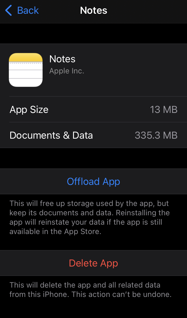 Moving the notes to iCloud nor delete any of them could not reclaim the space.