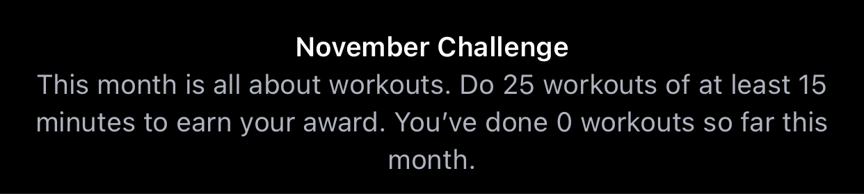 Lol. At 1 am I’m not really keen to jump on the cross trainer or go for a walk. But I’ve seen a big increase in my exercising since getting the watch. So for me that’s a win. October was a perfect month, so hoping for more of the same.It’s already November for you, AFB. You are slacking.Get with it and earn that badge.