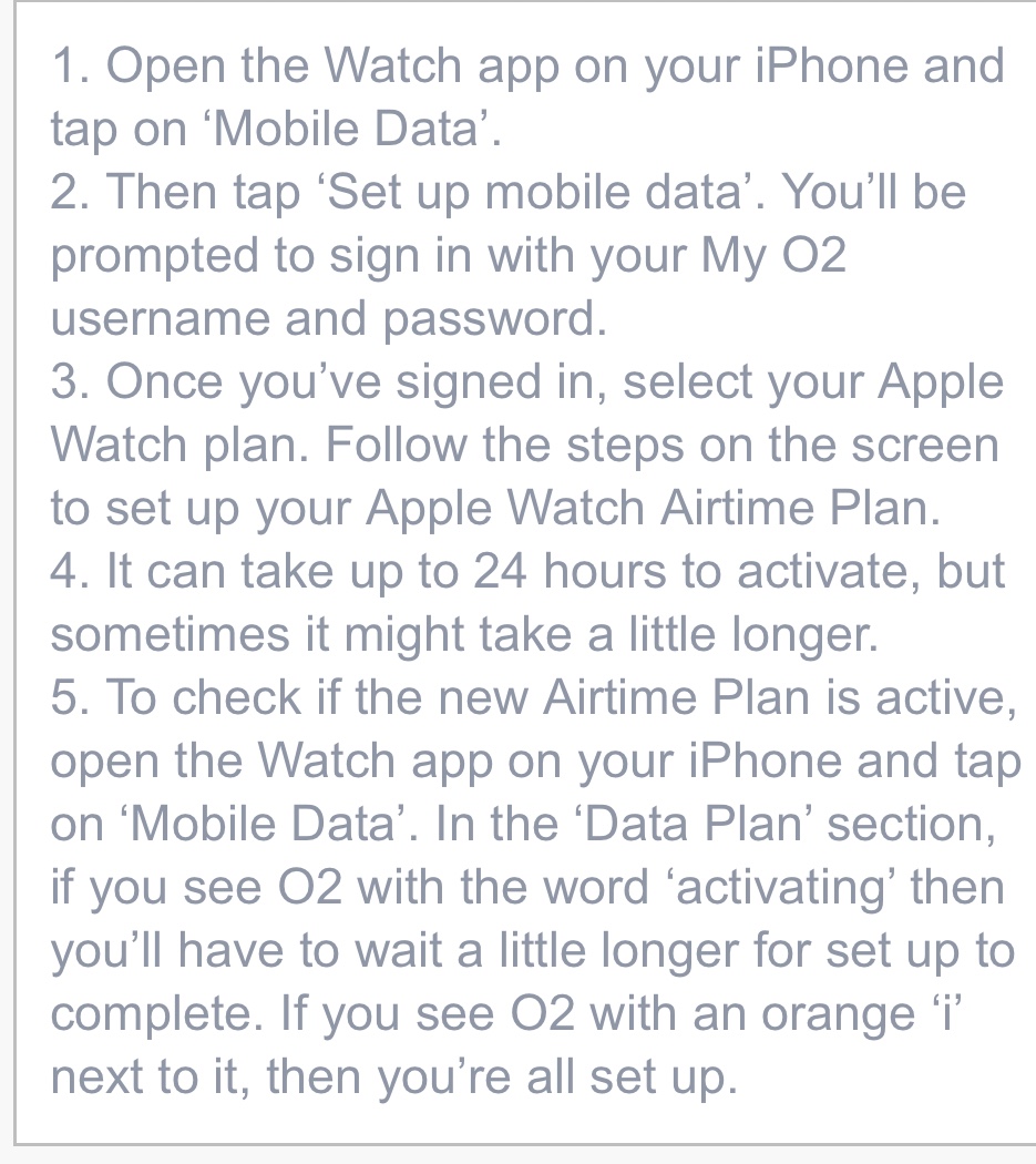 I went on the O2 chat this morning. They are a bunch of numpties. I told them I had an unlocked Apple Watch from Apple and an iPhone from o2 and wanted a data plan for the Apple Watch they told me I had to buy an Apple Watch on contract from O2 to be able to use the Apple Watch on O2 and then proceeded to try and get me to get an Apple Watch on contract. I complained and said that you can get a data only plan on other networks. The numpty said he would go and check this out for me and then came back and said I could get a data only plan for my watch.