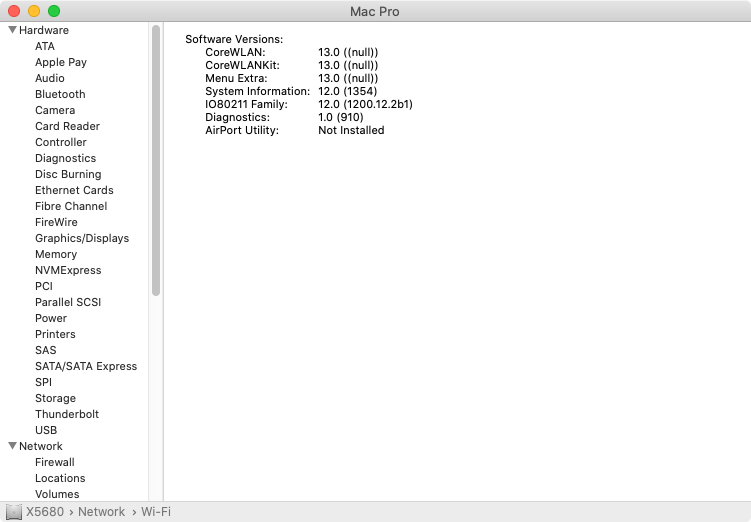 - MP5,1 AirPort Extreme: Apple removed the driver for BCM94322MC, AirPortBrcm4331.kext, from Catalina, the original AirPort Extreme card from both mid-2010/mid-2012 Mac Pro. If you updated your AirPort Extreme to BCM94360CD or BCM943602CD, both models work with Catalina. The original Bluetooth module works, both Ethernet works. (Mojave AirPortBrcm4331.kext still works with Catalina DP1).