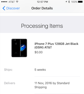 WOW! I guess I'm just really unlucky! My jet black 7+ 128gb has been "processing" for 20 days!JB+ 128 is in the US! Hoping it can be here tomorrow, we'll see how quickly it turns around in AK and makes it to Louisville. I'm just happy to be getting movement despite 18th-31st original date.
