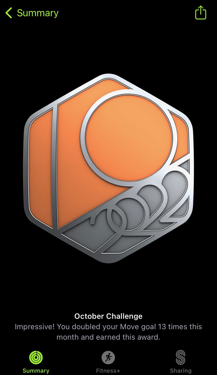Yes, it is nice when you have another goal that helps you get the monthly challenge.Not too shabby. Have recently been driven to close my rings every day, so challenges like this are still quite manageable.