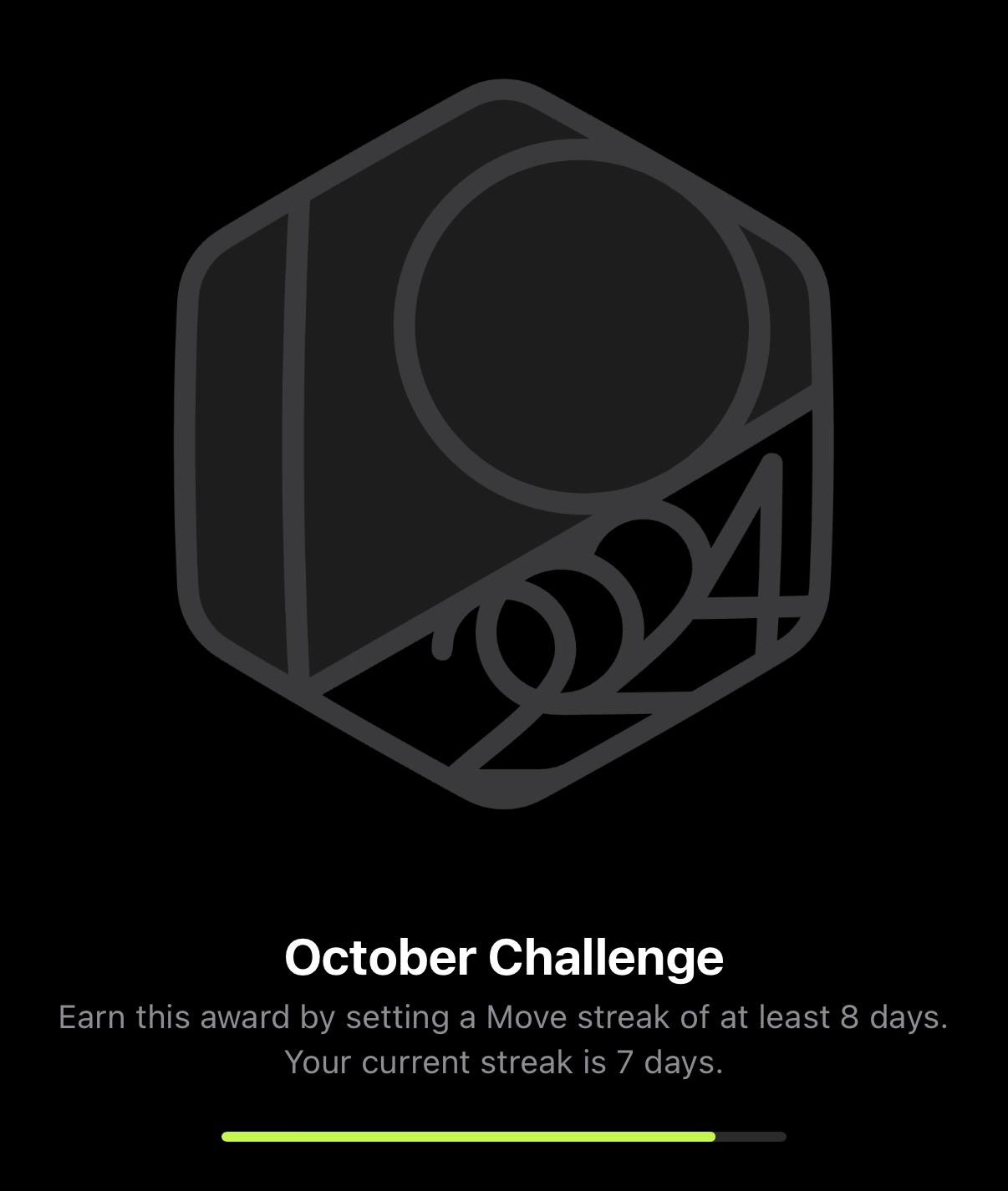 On your iPhone, go to your Activity widget (you can search for it) > Scroll down to Awards > touch Show More > Scroll to Monthly Challenges > in the lower right-hand corner of the tile touch Show All. You should now be in the Monthly Challenges screen. There should be a grayed out icon for the October Challenge next to the previous months.