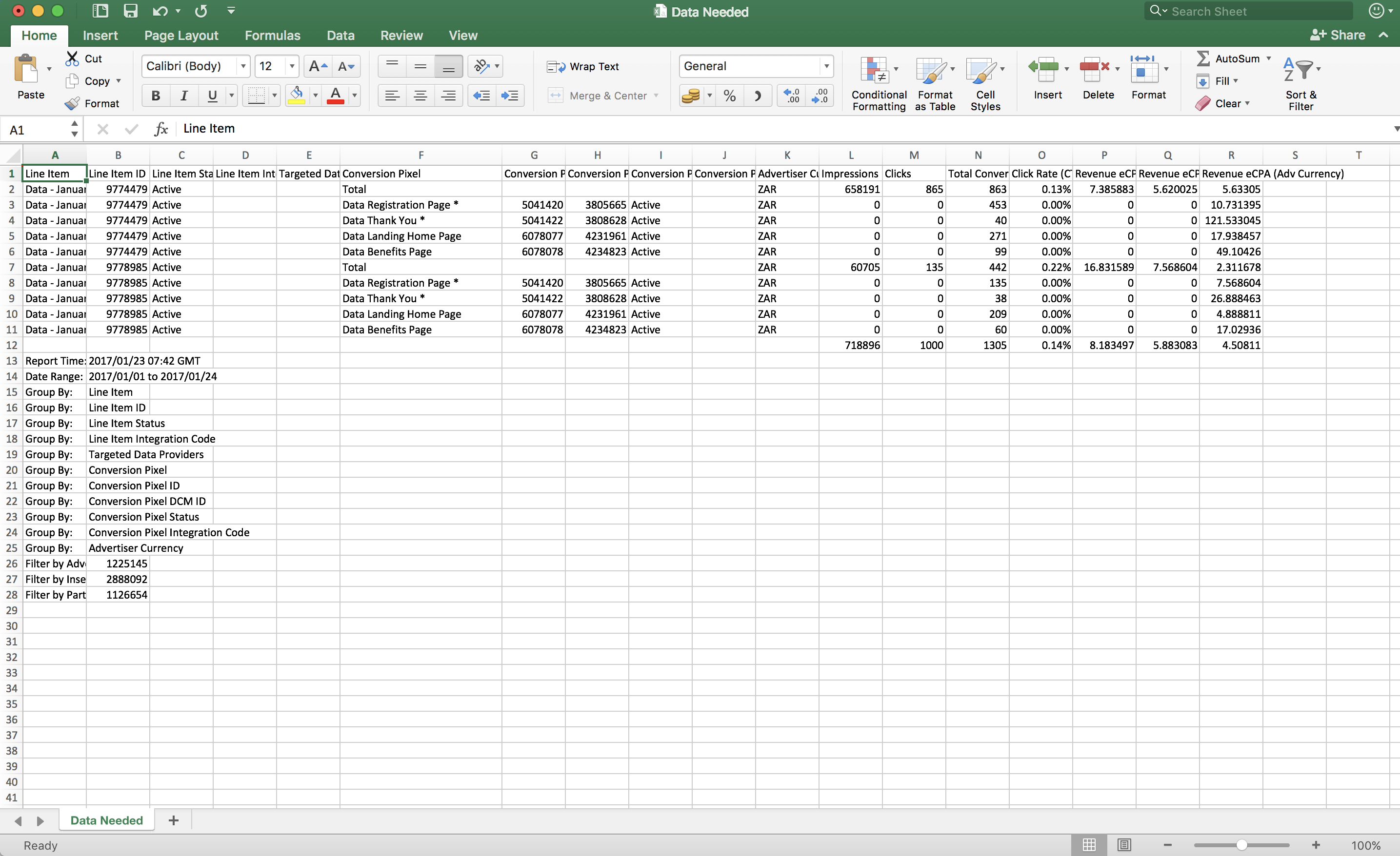 I have highlighted in red what I mean where "Advertiser Currency" should display "ZAR" but it is in the wring area even after the steps of Text to Columns.