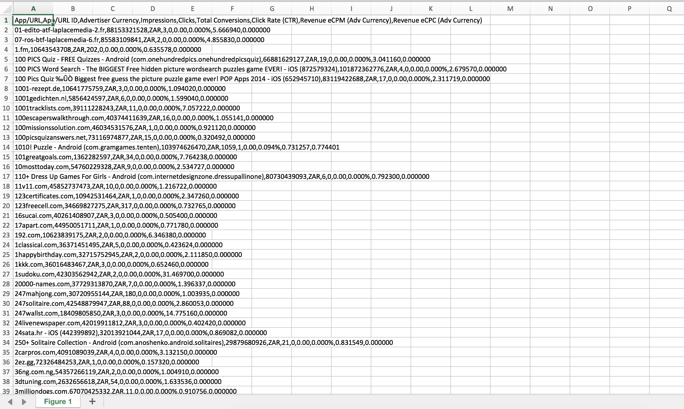 My particular issue is with Excel where it spits out data as in figure 1.