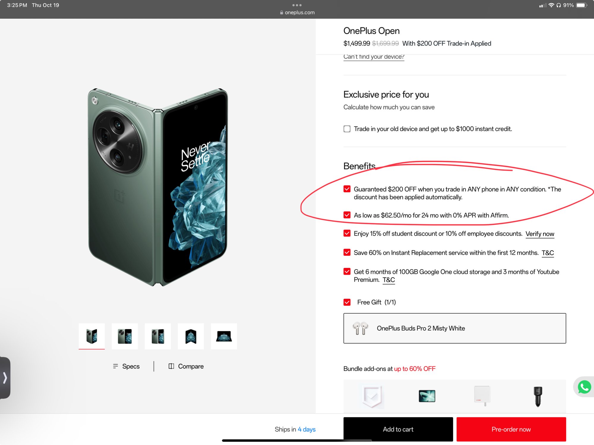 You pay £99 deposit, get a voucher for £250 off the phone as a thank you (In the UK that takes the phone from £1,599 down to £1,350) and you get free Buds Pro. Phew that's long winded!