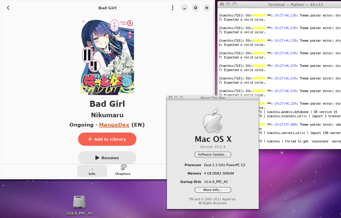 Indeed, I have also tried this prebuilt from _ppc64 that you mentioned, however, just as the 10.6.8 prebuilt, it crashes on startup, without displaying any bit of UI. And yes, I followed what was said for 10.5.8 on your websiteThis should not happen, and I had a working build on Leopard: https://macos-powerpc.org/packages_ppc64/QMPlay2