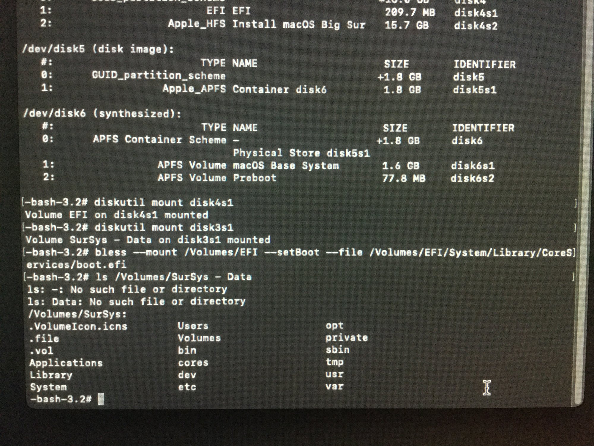 Correct.The second terminal command should be working but is failing. I assume the EFI you are trying to bless is on the USB installer.