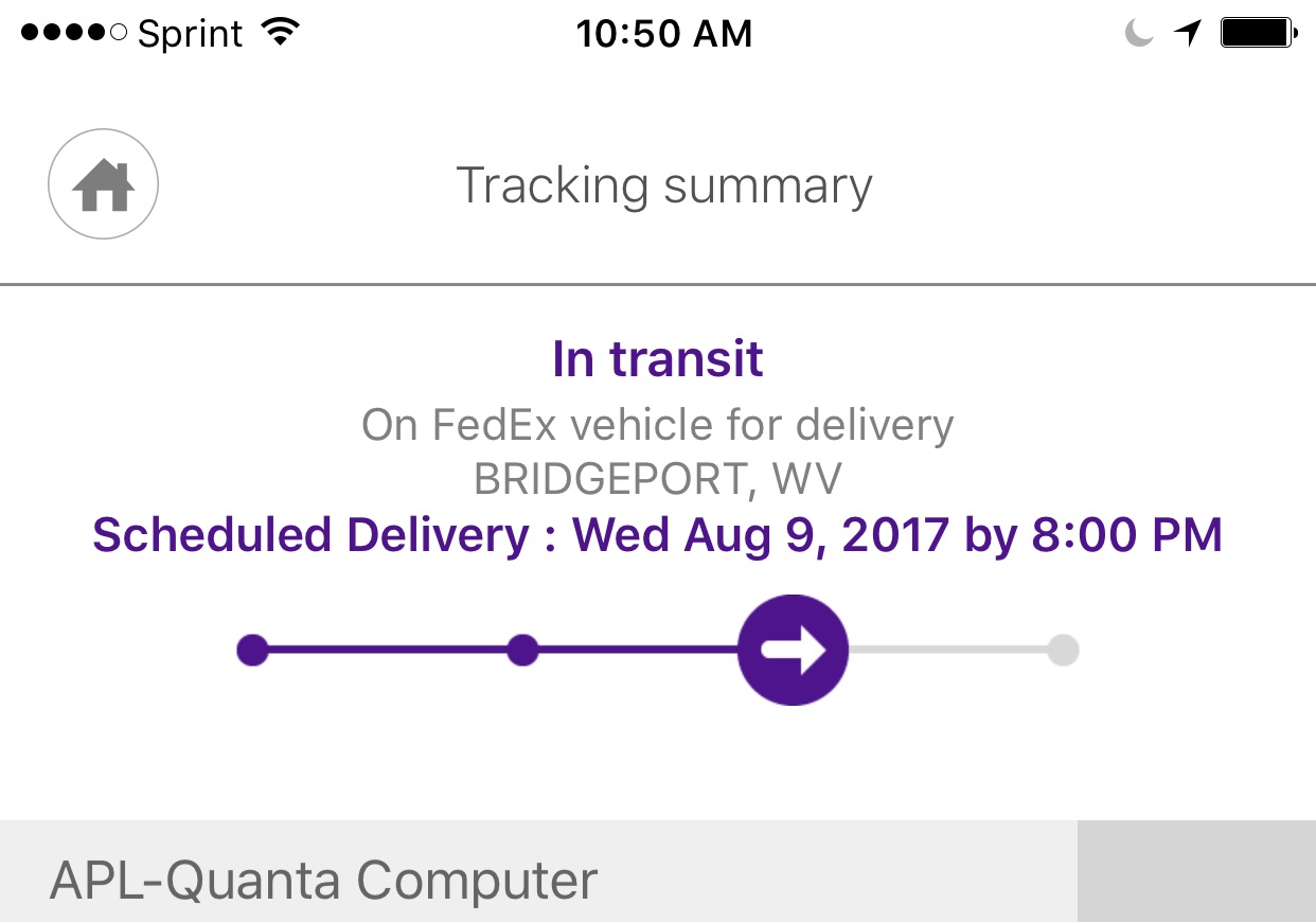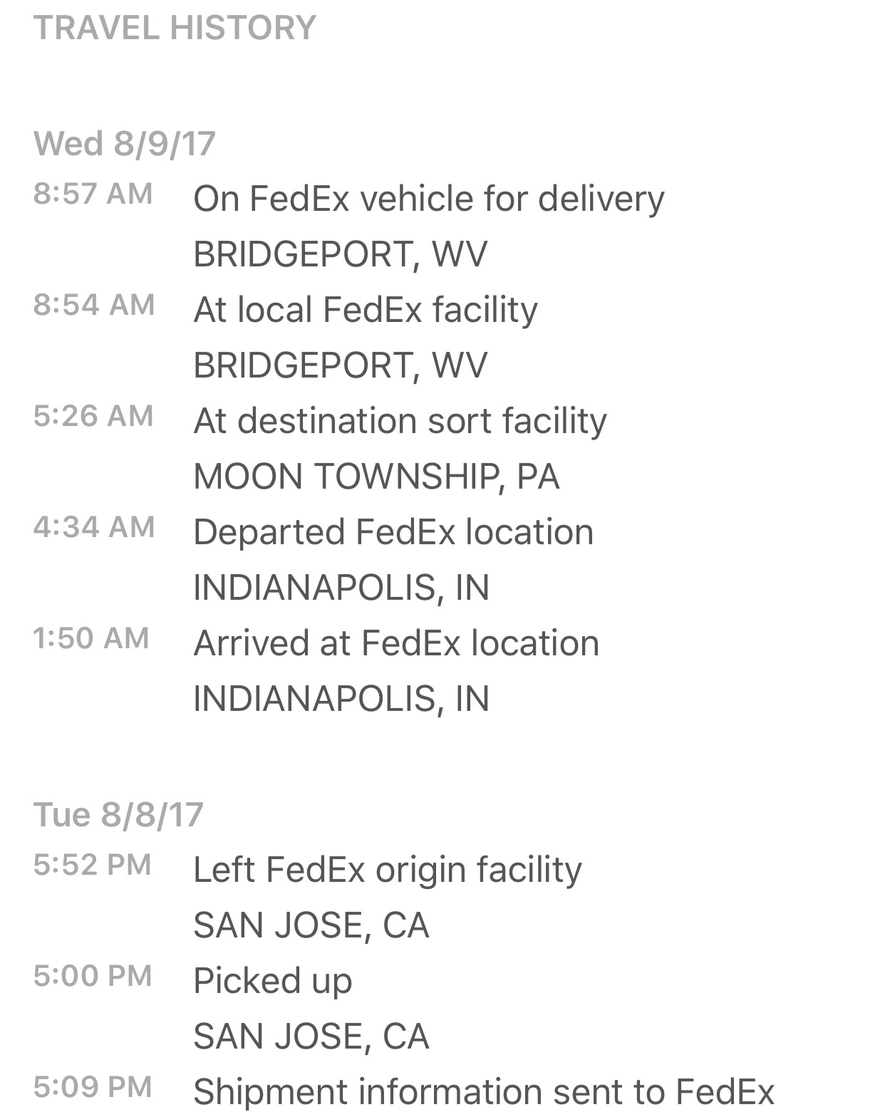 Got notification message last night, and it's on the truck for delivery already, from west to east coast.