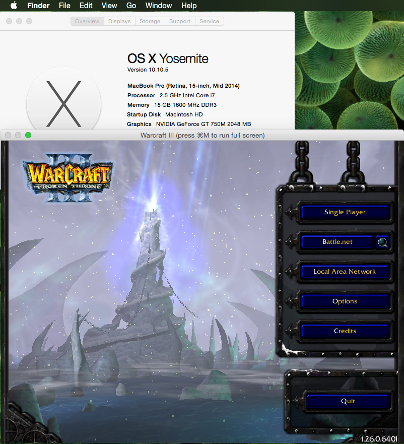 I'm sending the pictures of warcraft III on my mac under Yosemite.