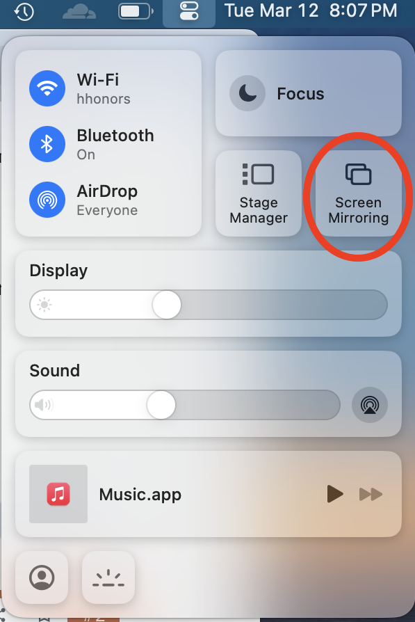 I have just got a new M3Pro MacBook Pro and I can turn on screen mirroring, but there does not seem to be any simple way of turning it off.
