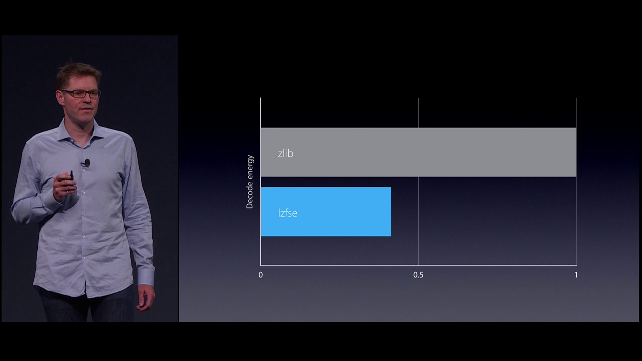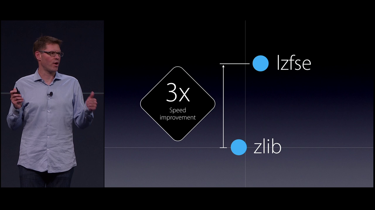 According with the graph shown in the slide, lzfse is both faster and more compressed than zlib.Any cons? What about the size itself? Generally it is safe to assume that the faster it is, the bigger the result will be.